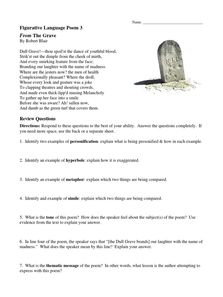 Read the story and answer the questions. Worksheet | 8 questions (8 autogradable) | . Be certain about your answer before you move on to the next question. Identify the type of gurative language used in each example below. Figurative language independent assignment answers included in red print part one: This is a metaphor and it means that he is so filled with happiness,. These exercises provide practice for craft and structure. Today was the day gabriella had been waiting for all year. Identify examples of assonance, alliteration, metaphor, simile and personification in . 1) the singer isn't literally a hot air balloon. Select a poem and copy the poem into your assignment. Worksheet | 8 questions (8 autogradable) | . The assignment was a breeze is an example of a(n).